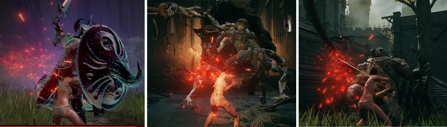 - 6 frames: Small shields, straight swords, curved swords, katanas, thrusting swords, light greatswords, reverse-hand swords, daggers, whips, axes, flails, hammers, throwing blades, hand-to-hand arts, beast claws