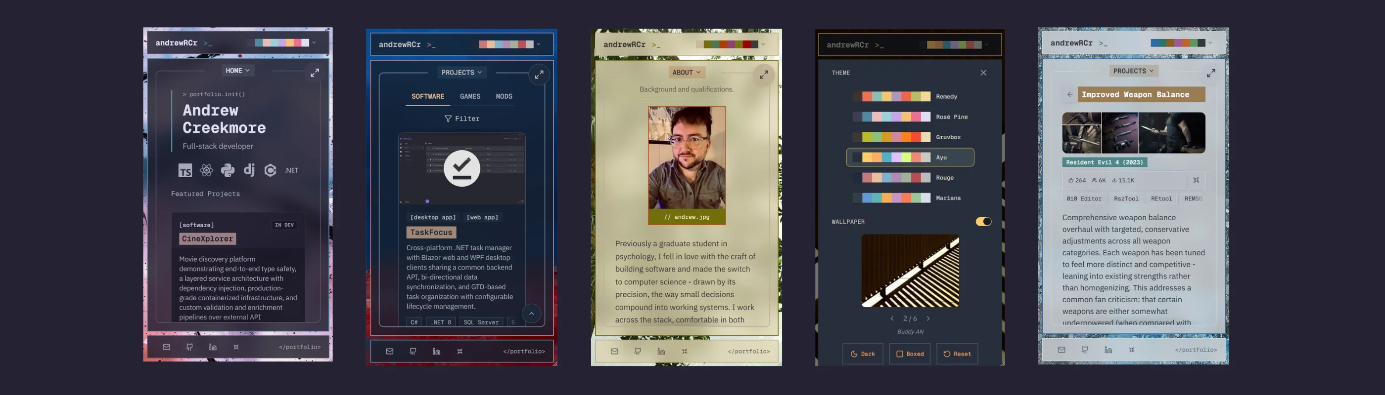 A developer portfolio engineered as a production application. All content — project data, theme definitions, and site configuration — flows through typed, validated data models. The multi-theme design system persists user preferences to cookies via Server Actions, preventing flash of unstyled content on page load. Accessibility is validated by automated testing across the component library and every theme combination.